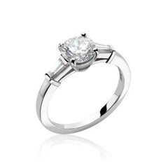 GRIFFE solitaire ring in platinum with round brilliant cut diamond and 2 side diamonds. Available from 1 ct. A classic setting that allows the pureness and the beauty of the solitaire diamond to assert itself.