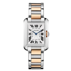 The Tank story takes an unexpected turn with the Tank Anglaise. This variation of the distinctive features of the Tank recreates the perfect alignment of the original thanks to a winding mechanism seamlessly incorporated into the case. Featuring a concentrated form and reinforced lines, the streamlined design reinterprets the original model and gives it a new dimension.