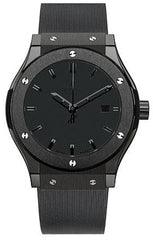 33mm polished and satin-finished black ceramic case, vertical satin-finished black ceramic bezel, black composite resin lateral inserts and bezel lugs, mat black dial, quartz HUB 2912 movement, black rubber strap with deployant buckle. Water resistant to 50 meters.