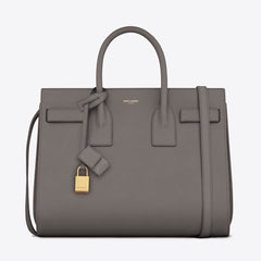 SIGNATURE SAINT LAURENT BAG WITH TUBULAR HANDLES, ACCORDION SIDES, COMPRESSION STRAP WITH TABS AND EMBOSSED SAINT LAURENT SIGNATURE AND REMOVABLE SHOULDER STRAP.